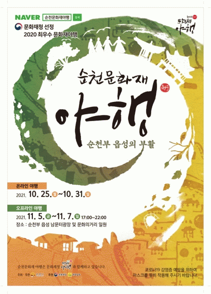 [¹Ìµð¾îÀü³² ÀÓ¼º¿Ï ±âÀÚ] ¼øÃµ½Ã´Â ¼øÃµ õ³â ¿ª»ç¸¦ ǰ°í ½Ã¹ÎµéÀÌ ¹ãÀ» ´©ºñ´Â ¾ß°£Çü ¹®ÈÇâÀ¯ ÇÁ·Î±×·¥ ¡®2021 ¼øÃµ ¹®ÈÀç ¾ßÇ࡯À» ¿Â¡¤¿ÀÇÁ¶óÀÎÀ¸·Î °³ÃÖÇÑ´Ù. ½Ã´Â ¿À´Â 10¿ù 25ÀϺÎÅÍ 31ÀϱîÁö 7Àϰ£ ¼øÃµ¹®ÈÀç¾ßÇà ȨÆäÀÌÁö¡¦