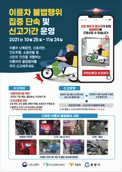 [¹Ìµð¾îÀü³² ÀÓ¼º¿Ï ±âÀÚ] ±¤¾ç½Ã°¡ ½Ã¹ÎÀÇ ¾ÈÀüÇÑ º¸Çàȯ°æ Á¶¼º°ú ÀÌ·ûÂ÷ ºÒ¹ýÇàÀ§ ±ÙÀýÀ» À§ÇØ ÀÌ·ûÂ÷ ºÒ¹ýÇàÀ§ ÁýÁß´Ü¼Ó ¹× ½Å°í±â°£À» ¿î¿µÇÑ´Ù. ÃÖ±Ù ÀÌ·ûÂ÷ °ü·Ã ºÒ¹ýÇàÀ§¿Í ±³Åë¹ý±Ô À§¹Ý µîÀ¸·Î ±³Åë»ç°í ¹ß»ýºóµµ°¡ Áõ°¡ÇÔ¿¡ ¡¦