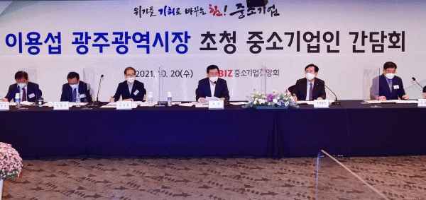 [¹Ìµð¾îÀü³² Á¦°¥´ëÁ¾ ±âÀÚ] À̿뼷 ±¤ÁÖ±¤¿ª½ÃÀåÀº 20ÀÏ Æòµ¿»ê´Ü Çѱ¹±ÝÇü»ê¾÷ÁøÈïȸ¿¡¼ ÁÖ¿ä ±ÝÇü±â¾÷ ´ëÇ¥µé°ú °£´ãȸ¸¦ °®°í Áö¿ª ±ÝÇü±â¾÷ÀÇ ¾Ö·Î»çÇ×À» ûÃëÇÏ´Â µî ÀǰßÀ» ³ª´³´Ù. À̳¯ °£´ãȸ´Â Äڷγª19ÀÇ ¾î·Á¿î »óȲ¿¡µµ Áö¡¦