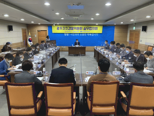 [¹Ìµð¾îÀü³² Á¦°¥´ëÁ¾ ±âÀÚ] ±¤ÁÖ±¤¿ª½Ã ÀÚÄ¡°æÂûÀ§¿øÈ¸´Â 20ÀÏ ½Ãû¿¡¼ ±¤ÁÖ½Ã, ±¤ÁÖ°æÂûû, ±¤ÁÖ±³À°Ã» µî À¯°üºÎ¼ °ü°èÀÚ µîÀÌ Âü¼®ÇÑ °¡¿îµ¥ 2Â÷ ½Ç¹«ÇùÀÇȸ¸¦ °®°í µðÁöÅÐ ¼º¹üÁË ÇÇÇØÀÚ º¸È£ ÃßÁø µî °ü°è±â°ü Çù·Â »çÇ×À» ³íÀÇÇß¡¦