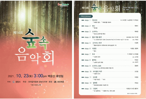 [¹Ìµð¾îÀü³² ÀÓ¼º¿Ï ±âÀÚ] ±¤¾ç½Ã´Â 10¿ù ¹®ÈÀÇ ´ÞÀ» ¸ÂÀÌÇØ ½Ã¹ÎµéÀÇ ÈÇÕ°ú º¼°Å¸® Á¦°øÀ» À§ÇÑ ´Ùä·Î¿î ¹®È Çà»ç¸¦ ¼±º¸ÀδÙ. ¿À´Â 23ÀÏ ¿ÀÈÄ 3½Ã ¹é¿î»êÀÚ¿¬È޾縲¿¡¼ Çѱ¹À½¾ÇÇùȸ ±¤¾ç½ÃÁöºÎ°¡ ÁÖ°üÇÏ´Â Á¦14ȸ ¹é¿î»ê È޾縲¡¦