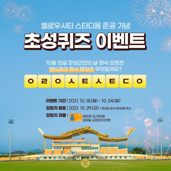 [¹Ìµð¾îÀü³² ±è±âö ±âÀÚ] À强±ºÀÌ Áö³ 15ÀÏ °³ÀåÇÑ ¿»·Î¿ì½ÃƼ ½ºÅ¸µð¿òÀ» ¾Ë¸®´Â SNS À̺¥Æ®¸¦ ¿¾î ÈÁ¦´Ù. À强¿¡ »õ·Î °Ç¸³µÈ °ø¼³¿îµ¿ÀåÀÇ ¸íĪÀ» ¸ÂÃß´Â À̺¥Æ®·Î ÃʼºÀÌ ÈùÆ®·Î ÁÖ¾îÁø´Ù. Âü¿© ±â°£Àº ¿À´Â 24ÀϱîÁö¸ç Áö¿ª¡¦
