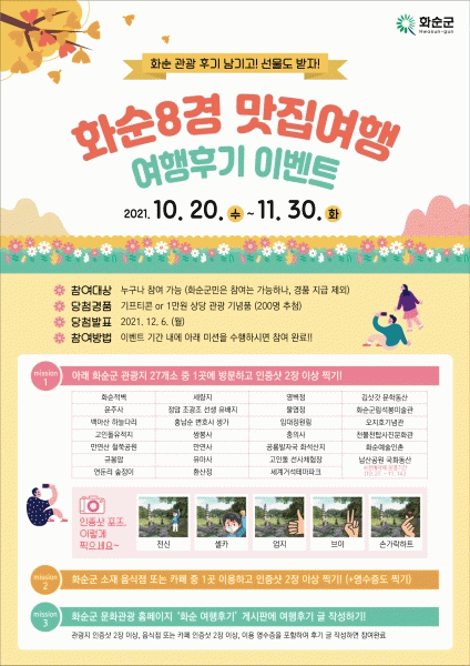 [¹Ìµð¾îÀü³² Á¦°¥´ëÁ¾ ±âÀÚ] ȼø±ºÀÌ 10¿ù 20ÀϺÎÅÍ 11¿ù 30ÀϱîÁö °ü±¤°´À» ´ë»óÀ¸·Î ¡®È¼ø8°æ ¸ÀÁý¿©Ç࡯ ¿©Çà Èıâ À̺¥Æ®¸¦ ÁøÇàÇÑ´Ù. À̺¥Æ®´Â °¡À»Ã¶À» ¸Â¾Æ Äڷγª19·Î À§ÃàµÈ ¿©Çà ½É¸®¸¦ ÃÖ¼ÒÈÇÏ°í ¼Ò±Ô¸ð °ü±¤°´À» À¯Ä¡Çϱ⡦