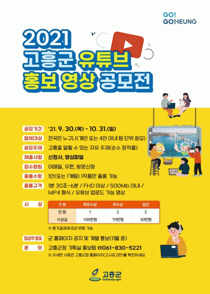 [¹Ìµð¾îÀü³² Á¦°¥´ëÁ¾ ±âÀÚ] °íÈﱺÀº °íÈïÀ» È«º¸ÇÒ ¼ö ÀÖ´Â Âü½ÅÇÑ ¿µ»óÀ» ¹ß±¼Çϱâ À§ÇØ ¡®2021 °íÈﱺ À¯Æ©ºê È«º¸ ¿µ»ó °ø¸ðÀü¡¯À» °³ÃÖÇÑ´Ù°í ¹àÇû´Ù. À̹ø °ø¸ðÀüÀº ÀÚÀ¯ ÁÖÁ¦·Î °íÈïÀ» ¾Ë¸± ¼ö ÀÖ´Â ÅåÅå Æ¢´Â ¾ÆÀ̵ð¾î¸¦ Ç¥ÇöÇÑ¡¦