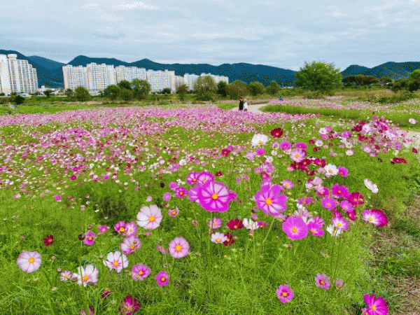 [¹Ìµð¾îÀü³² Á¦°¥´ëÁ¾ ±âÀÚ] ȼø±ºÀÌ È¼øÃµº¯¿¡ Á¶¼ºÇÑ ÄÚ½º¸ð½º »êÃ¥±æÀÌ Àαâ´Ù. ±ºÀÌ »ïõ±³¿¡¼ ¹ú°íõ »çÀÌ ÃÑ ±æÀÌ 1.7km¿¡ Á¶¼ºÇÑ ÄÚ½º¸ð½º »êÃ¥±æÀÌ ¹«¸£ÀÍÀº °¡À»ÀÇ Ã»Ã븦 dz±â°í ÀÖ´Ù. ÄÚ½º¸ð½º »êÃ¥±æÀº ÁֹεéÀÌ ÀÚÁÖ ÀÌ¡¦