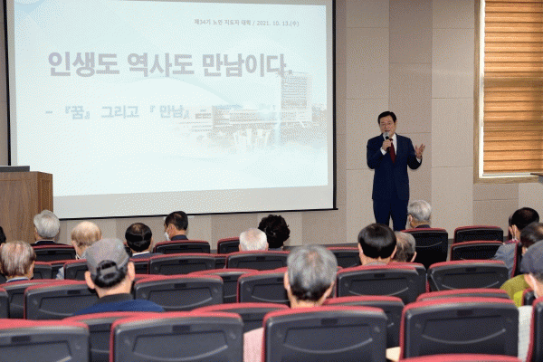[¹Ìµð¾îÀü³² Á¦°¥´ëÁ¾ ±âÀÚ] À̿뼷 ±¤ÁÖ±¤¿ª½ÃÀåÀº 13ÀÏ ±¤ÁÖ³ëÀÎȸ°ü¿¡¼ ´ëÇѳëÀÎȸ ±¤ÁÖ±¤¿ª½Ã¿¬ÇÕȸ ÃÊûÀ¸·Î Á¦34±â ³ëÀÎÁöµµÀÚ´ëÇÐ °¿¬ÀÚ·Î ³ª¼¹´Ù. ÀÌ ½ÃÀåÀº ¡®Àλýµµ ¿ª»çµµ ¸¸³²ÀÌ´Ù¡¯¶ó´Â ÁÖÁ¦·Î ¡°Áö³ª¿Â ÀλýÀ» µ¹ÀÌÄÑ º¸¡¦