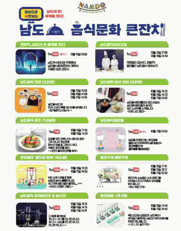 [¹Ìµð¾îÀü³² Á¦°¥´ëÁ¾ ±âÀÚ] Àü¶ó³²µµ´Â 15ÀϺÎÅÍ 3Àϰ£ À¯Æ©ºê ä³Î ¡®³²µµÀ½½Ä¹®ÈÅ«ÀÜÄ¡TV¡¯¿Í ¿©¼ö¼¼°è¹Ú¶÷ȸÀå ÀÏ¿ø¿¡¼ ¡®³²µµÀÇ ¸À ¼¼°è¸¦ ÀÕ´Ù¡¯¸¦ ÁÖÁ¦·Î Á¦27ȸ ³²µµÀ½½Ä¹®ÈÅ«ÀÜÄ¡¸¦ °³ÃÖÇÑ´Ù°í ¹àÇû´Ù. ¿ÃÇØ´Â ¿Â¶óÀÎ ÇÁ·Î±×¡¦