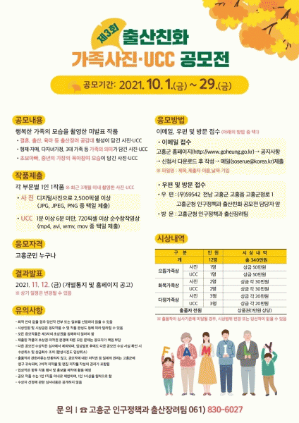 [¹Ìµð¾îÀü³² Á¦°¥´ëÁ¾ ±âÀÚ] °íÈﱺÀº ¿À´Â 10¿ù 29ÀϱîÁö Ãâ»êÄ£È °¡Á·»çÁø¡¤UCC °ø¸ðÀüÀ» °³ÃÖÇÑ´Ù. ÀÌ´Â ¿ÃÇØ 3ȸÂ÷·Î ¾ÆÀÌ¿Í °¡Á·ÀÌ ÇÔ²²ÇÏ´Â ÀÏ»óÀÇ ¼ÒÁßÇÔÀ» °øÀ¯Çϰí ÀúÃâ»ê Àνݳ¼±°ú Áö¿ª ³» Ãâ»êÄ£È ºÐÀ§±â Á¶¼ºÀ» À§ÇØ Ãß¡¦