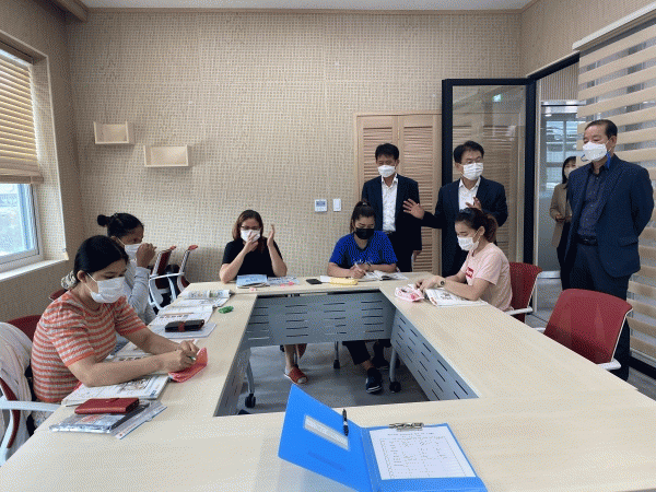 [¹Ìµð¾îÀü³² Á¦°¥´ëÁ¾ ±âÀÚ] Áö³´Þ 29ÀÏ À̽¿Á °Áø±º¼ö´Â 9¿ù °³¼ÒÇÑ °Áø¿Ü±¹Àν°Å͸¦ ¹æ¹®ÇØ Çѱ¹¾î ±³À°À» ¹Þ°íÀÖ´Â °áÈ¥ÀÌÁÖ¿©¼ºµéÀ» °Ý·ÁÇÏ°í ¼ÒÅëÀÇ ½Ã°£À» °¡Á³´Ù. ±ºÀº 2020³â ÇàÁ¤¾ÈÀüºÎ°¡ ÁÖ°üÇÑ ¡®¿Ü±¹ÀÎ ÁֹΠÁýÁß °ÅÁÖÁö¡¦