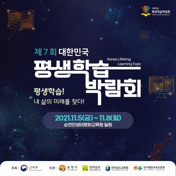 [¹Ìµð¾îÀü³² ÀÓ¼º¿Ï ±âÀÚ] ¼øÃµ½Ã´Â ¿À´Â 11¿ù 5ÀϺÎÅÍ 8ÀϱîÁö 4Àϰ£ ¼øÃµ¸¸»ýŹ®È±³À°¿ø¿¡¼ ¡®Á¦7ȸ ´ëÇѹα¹ Æò»ýÇнÀ¹Ú¶÷ȸ¡¯¸¦ °³ÃÖÇÑ´Ù. ±³À°ºÎ°¡ ÁÖÃÖÇÏ°í ¼øÃµ½Ã¿Í Àü¶ó³²µµ, Àü¶ó³²µµ±³À°Ã», ±¹°¡Æò»ý±³À°ÁøÈï¿øÀÌ °øµ¿ÁÖ°ü¡¦