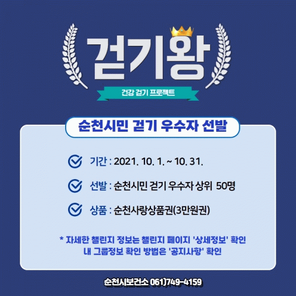 [¹Ìµð¾îÀü³² ÀÓ¼º¿Ï ±âÀÚ] ¼øÃµ½Ã°¡ ½Ã¹Î °Ç°°È±â¸¦ À¯µµÇÏ°í »ýȰ ¼Ó °È±â¿îµ¿ ½Çõ ºÐÀ§±â¸¦ È®»ê½Ã۱â À§ÇØ ¸ð¹ÙÀÏ °È±â¾Û ¡®¿öÅ©¿Â¡¯À» ÅëÇØ °È±â¿Õ 縰Áö¸¦ ÁøÇàÇÑ´Ù. 10¿ù 1ÀϺÎÅÍ 31ÀϱîÁö ÇÑ´Þ°£ ¿î¿µµÇ´Â ¼øÃµ½Ã¹Î °È±â¿Õ 硦