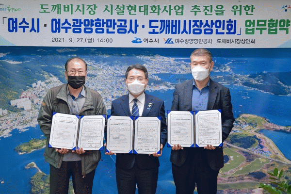 [¹Ìµð¾îÀü³² ÀüÇü¼º ±âÀÚ] ¿©¼ö½Ã´Â 27ÀÏ ¿©¼ö±¤¾çÇ׸¸°ø»ç, µµ±úºñ½ÃÀå »óÀÎȸ¿Í ÇÔ²² ¡®µµ±úºñ½ÃÀå ¾ÆÄÉÀÌµå ¼³Ä¡»ç¾÷¡¯ »óÈ£ Çù·ÂÀ» À§ÇÑ ¾÷¹« Çù¾à½ÄÀ» ü°áÇß´Ù°í ¹àÇû´Ù. µµ±úºñ½ÃÀå ¾ÆÄÉÀÌµå ¼³Ä¡»ç¾÷Àº Àü¶ó³²µµ °ø¸ð»ç¾÷À¸·Î ¡¦