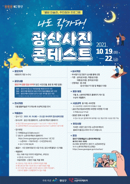 [¹Ìµð¾îÀü³² ±èÁ¤¿ì ±âÀÚ] ±¤ÁÖ ±¤»ê±¸°¡ ½Ö¾Ï°ø¿ø µî 5°³ º°¹ã ¹Ì¼ú°ü°ú ¿¬°èÇØ ¡®³ªµµ ÀÛ°¡´Ù ±¤»ê»çÁøÄÜÅ×½ºÆ®¡¯ °ø¸ðÀüÀ» °³ÃÖÇÑ´Ù. À̹ø °ø¸ðÀüÀº ´ëÇѹα¹ ½Ã¹Î ´©±¸³ª Âü¿©ÇÒ ¼ö ÀÖ´Ù. ±¤»ê±¸¸¦ ¹è°æÀ¸·Î ÇÑ Èú¸µ, ÀÏ»ó, Ã߾