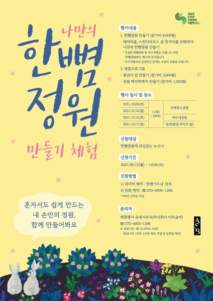 [¹Ìµð¾îÀü³² ÀÓ¼º¿Ï ±âÀÚ] ¼øÃµ¸¸±¹Á¦Á¤¿ø¹Ú¶÷ȸ Á¶Á÷À§¿øÈ¸´Â Á¤¿øÀÌ ÀÏ»óÀÌ µÇ´Â Á¤¿ø ¹®ÈÈ®»êÀ» À§ÇØ ¿À´Â 10¿ù ¡®³ª¸¸ÀÇ ÇÑ»ÂÁ¤¿ø ¸¸µé±â¡¯Ã¼ÇèÇà»ç¸¦ °³ÃÖÇÑ´Ù. À̹ø ¡®³ª¸¸ÀÇ ÇÑ»ÂÁ¤¿ø ¸¸µé±â¡¯ üÇèÇà»ç´Â µµ½É Àüü°¡ Á¤¿øÀÌ µÇ¡¦