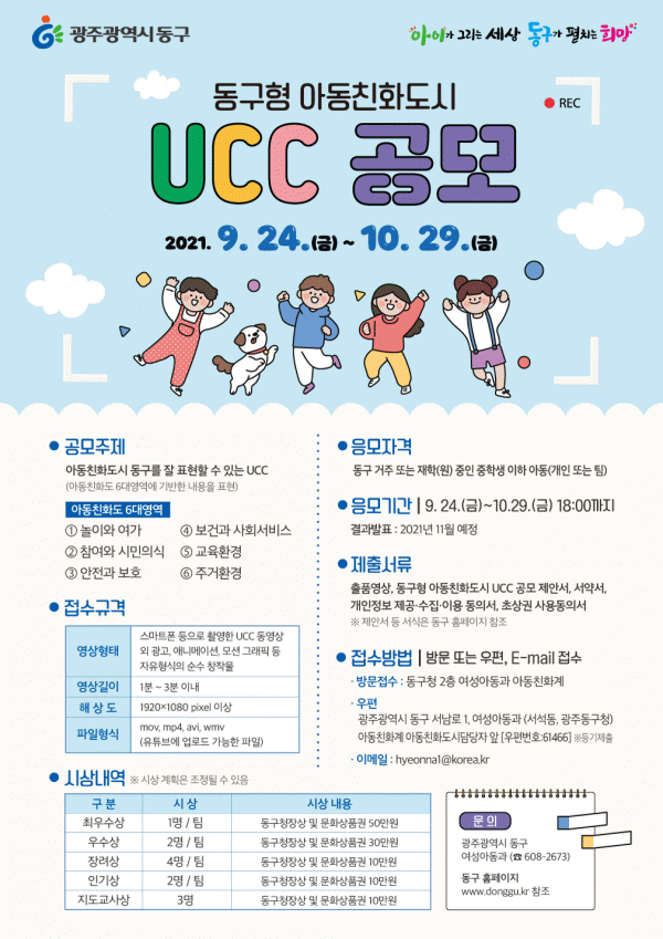 [¹Ìµð¾îÀü³² ±èÁ¤¿ì ±âÀÚ] ±¤ÁÖ µ¿±¸´Â ¾Æµ¿ÀÇ ´Ù¾çÇÑ ÀǰßÀ» ¹Ý¿µÇØ ¾Æµ¿ÀÌ ±×¸®´Â ¾Æµ¿Ä£È»ç¾÷À» ÃßÁøÇϱâ À§ÇØ ¡®Á¦2ȸ µ¿±¸Çü ¾Æµ¿Ä£Èµµ½Ã UCC °ø¸ðÀü¡¯À» °³ÃÖÇÑ´Ù°í ¹àÇû´Ù. ¿ÃÇØ·Î 2ȸ°¸¦ ¸Â´Â µ¿±¸Çü ¾Æµ¿Ä£Èµµ½Ã UCC °ø¸ðÀü¡¦