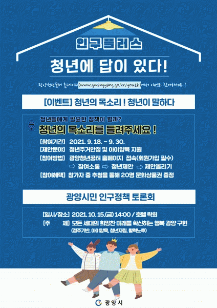 [¹Ìµð¾îÀü³² ÀÓ¼º¿Ï ±âÀÚ] ±¤¾ç½Ã°¡ û³âÀÇ ³¯À» ±â³äÇØ ¿À´Â 18~30ÀÏ ¿Â¶óÀÎ Àα¸Ç÷¯½º À̺¥Æ®ÀÎ ¡®Ã»³âÀÇ ¸ñ¼Ò¸®¡¯¸¦ ÁøÇàÇÑ´Ù. ÇØ´ç À̺¥Æ®´Â ½Ã¹ÎÀÇ ÀÏ»ó°ú ¹ÐÁ¢ÇÑ Àα¸Á¤Ã¥À» ¼ö¸³Çϱâ Àü¡¤ÈÄ¿¡ û³â ÀǰßÀ» ¼ö·ÅÇÏ°í ºñ´ë¸é ¹æ½Ä¡¦