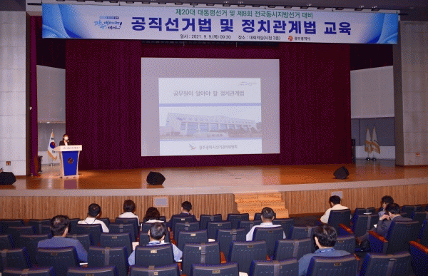 [¹Ìµð¾îÀü³² Á¦°¥´ëÁ¾ ±âÀÚ] ±¤ÁÖ±¤¿ª½Ã´Â 9ÀÏ ¿ÀÀü ½Ãû ´ëȸÀǽǿ¡¼ ³»³â ½Ç½ÃµÇ´Â Á¦20´ë ´ëÅë·É¼±°Å¿Í Á¦8ȸ Àü±¹µ¿½ÃÁö¹æ¼±°Å¿¡ ´ëºñÇØ ½Ãû °øÁ÷ÀÚ¸¦ ´ë»óÀ¸·Î ÇöÀå ¹× ¿Â¶óÀÎÀ¸·Î ¡®°øÁ÷¼±°Å¹ý ±³À°¡¯À» ½Ç½ÃÇß´Ù. ³»³â¿¡´Â ´ëÅ롦