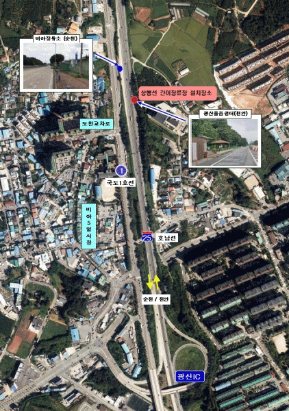 [¹Ìµð¾îÀü³² Á¦°¥´ëÁ¾ ±âÀÚ] ±¤ÁÖ±¤¿ª½Ã´Â ±¤»ê±¸ ÁֹεéÀÇ ¼¿ï¹æÇâ °í¼Ó¹ö½º ÀÌ¿ë ½Ã ½Ã°£¡¤°æÁ¦Àû ºÎ´ãÀ» ÁÙÀ̱â À§ÇØ È£³²°í¼Óµµ·Î »óÇ༱ ±¤»êÁ¹À½½°ÅÍ¿¡ °£ÀÌÁ¤·ùÀåÀ» Á¶¼ºÇÑ´Ù. ¼³Ä¡Àå¼Ò´Â ±¤»êIC¿Í ºÏ±¤»êIC Áß°£ÁöÁ¡¿¡ À§Ä¡ÇÏ°í¡¦