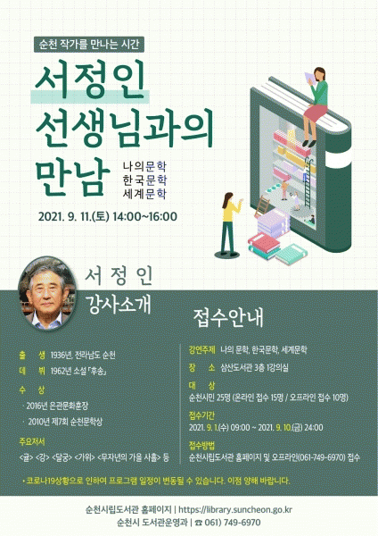 [¹Ìµð¾îÀü³² ÀÓ¼º¿Ï ±âÀÚ] ¼øÃµ½Ã´Â ¿À´Â 11ÀÏ ¿ÀÈÄ 2½Ã »ï»êµµ¼°ü¿¡¼ ¼Ò¼³°¡ ¼Á¤ÀÎ ÀÛ°¡¸¦ ÃÊÃ»ÇØ ¡®¼øÃµ ´ëÇ¥ ÀÛ°¡¿ÍÀÇ ¸¸³²¡¯ Çà»ç¸¦ °³ÃÖÇÑ´Ù. ½ÇÇèÀûÀÎ ¼Ò¼³ ¾²±â¸¦ ²ÙÁØÇÏ°Ô ½ÇõÇϸç Çѱ¹ ¼Ò¼³ÀÇ ÁöÆòÀ» ÁúÀû¡¤¾çÀûÀ¸·Î È®¡¦