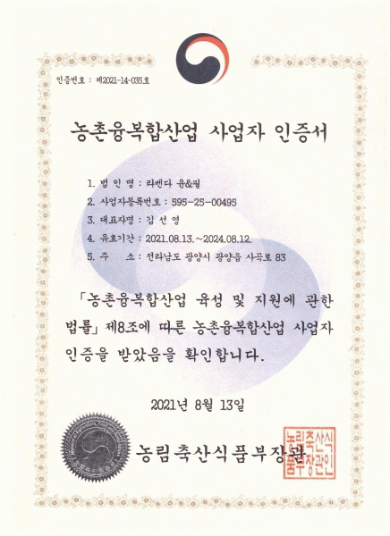 [¹Ìµð¾îÀü³² ÀÓ¼º¿Ï ±âÀÚ]±¤¾ç½Ã´Â ±¤¾çÀ¾ »ç°î¸®¿¡ À§Ä¡ÇÑ ¡®¶óº¥´ÙÀ±¾ØÇÊ¡¯ÀÌ ¡®³óÃÌÀ¶º¹ÇÕ»ê¾÷ »ç¾÷ÀÚ ÀÎÁõ¡¯À» ³ó¸²Ãà»ê½ÄǰºÎ Àå°üÀ¸·ÎºÎÅÍ ¹Þ¾Ò´Ù°í ¹àÇû´Ù. 6Â÷»ê¾÷ »ç¾÷ÀÚ ÀÎÁõÀ̶õ ³ó»ê¹° Àç¹è¡¤»ý»ê°ú ¿ø¹°À» Ȱ¿ëÇÑ °¡°øÇ° »ý¡¦