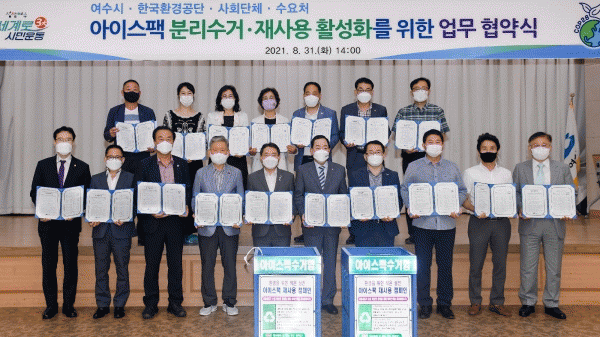 [¹Ìµð¾îÀü³² ÀüÇü¼º ±âÀÚ] COP28 À¯Ä¡ Á߽ɵµ½Ã ¿©¼ö½Ã°¡ 31ÀÏ ½Ãû ȸÀǽǿ¡¼ Çѱ¹È¯°æ°ø´Ü, ½Ã¹Î»çȸ´Üü, »óÀÎȸ µî°ú ¾ÆÀ̽ºÆÑ Àç»ç¿ë Ȱ¼ºÈ¸¦ À§ÇÑ ¾÷¹«Çù¾àÀ» ü°áÇß´Ù°í ¹àÇû´Ù. À̳¯ ¾÷¹«Çù¾à¿¡´Â ±Ç¿ÀºÀ ¿©¼ö½ÃÀå°ú Çѱ¹È¯°æ¡¦