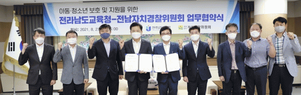 [¹Ìµð¾îÀü³² Á¦°¥´ëÁ¾ ±âÀÚ] Àü¶ó³²µµ±³À°Ã»°ú Àü¶ó³²µµÀÚÄ¡°æÂûÀ§¿øÈ¸°¡ 8¿ù 27ÀÏ ¿ÀÈÄ Àü¶ó³²µµ±³À°Ã» ºñÁî´Ï½º½Ç¿¡¼ ¾÷¹«Çù¾àÀ» ü°áÇß´Ù. Çб³Æø·Â¡¤¼ºÆø·Â¡¤¾Æµ¿ÇÐ´ë µî ¹üÁËÇÇÇØ ¿¹¹æ°ú ¾Æµ¿¡¤Ã»¼Ò³â º¸È£ ¡¤ Áö¿ø¿¡ »óÈ£Çù·ÂÀ»¡¦