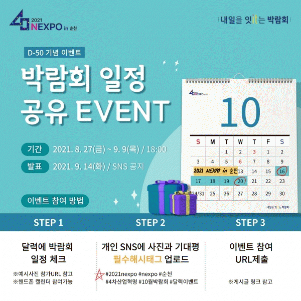 [¹Ìµð¾îÀü³² ÀÓ¼º¿Ï ±âÀÚ] ¼øÃµ½Ã´Â 4Â÷»ê¾÷Çõ¸í¹Ú¶÷ȸ ¡®2021 NEXPO in ¼øÃµ¡¯ÀÇ °³ÃÖ D-50ÀÏÀ» ¸Â¾Æ Àü ±¹¹Î Âü¿© ºÐÀ§±â¸¦ Á¶¼ºÇϱâ À§ÇØ ÀÏÁ¤ °øÀ¯ À̺¥Æ®¸¦ ÁøÇàÇÑ´Ù. ¡®NEXPO ¹Ú¶÷ȸ °³ÃÖ 50ÀÏ ÀüÀ¸·Î ¾î´À»õ ´« ¾Õ¡¯À̶ó´Â ÁÖÁ¦·Î¡¦