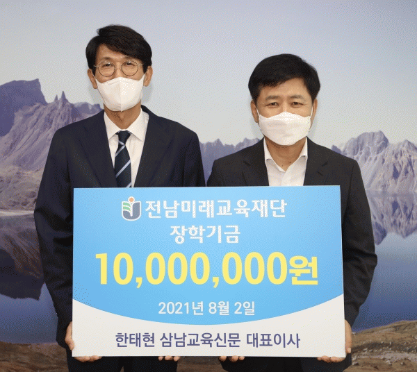 [¹Ìµð¾îÀü³² Á¦°¥´ëÁ¾ ±âÀÚ] ÇÑÅÂÇö »ï³²±³À°½Å¹® ´ëÇ¥À̻簡 2ÀÏ Àü³²¹Ì·¡±³À°Àç´Ü¿¡ ÀåÇбâ±Ý 1,000¸¸¿øÀ» ±âŹÇß´Ù. ÇÑÅÂÇö ´ëÇ¥´Â Àü¶ó³²µµ±³À°Ã» ±³À°°¨½Ç¿¡¼ Àå¼®¿õ ±³À°°¨¿¡°Ô ÀåÇбÝÀ» Àü´ÞÇϰí ÇâÈÄ ¸Å³â 1,000¸¸¿ø ¾¿ ÀåÇбݡ¦