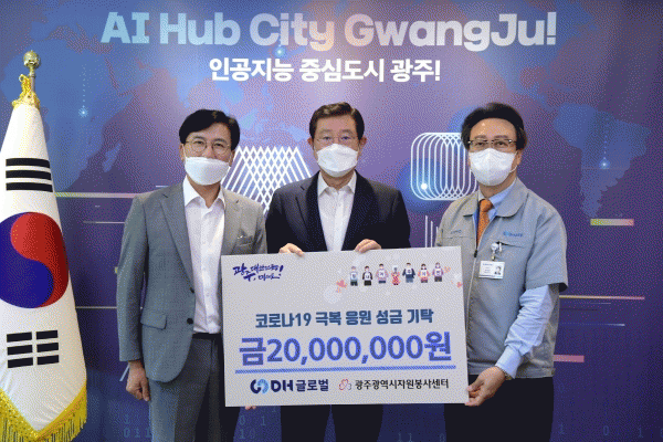 [¹Ìµð¾îÀü³² Á¦°¥´ëÁ¾ ±âÀÚ] ¢ßDH±Û·Î¹úÀÌ Äڷγª19 ±Øº¹°ú ¹«´õÀ§ ¼Ó ÀÌÁß°í·Î ½Î¿ì´Â ±¤ÁֽùεéÀ» ÀÀ¿øÇÏ°í °Ý·ÁÇϱâ À§ÇØ ¼º±Ý 2000¸¸¿øÀ» Àü´ÞÇß´Ù. ±¤ÁÖ±¤¿ª½Ã´Â 29ÀÏ ¿ÀÀü ½Ãû Á¢°ß½Ç¿¡¼ ¢ßDH±Û·Î¹ú°ú ±âʽÄÀ» °³ÃÖÇß´Ù. ÀÌ¡¦
