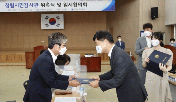 [¹Ìµð¾îÀü³² Á¦°¥´ëÁ¾ ±âÀÚ] Àü¶ó³²µµ±³À°Ã»ÀÌ 7¿ù 29ÀÏ Ã»»ç 2Ãþ ´ëȸÀǽǿ¡¼ û·Å½Ã¹Î°¨»ç°ü 41¸íÀÌ Âü¼®ÇÑ °¡¿îµ¥¡®Àü¶ó³²µµ±³À°Ã» Á¦2±â û·Å½Ã¹Î°¨»ç°ü À§ÃË½Ä ¹× ÀÓ½ÃÇùÀÇȸ¡¯¸¦ °³ÃÖÇß´Ù. µµ±³À°Ã»Àº À§Ã˽Ŀ¡ ¾Õ¼ Áö³ 2³â µ¿¡¦