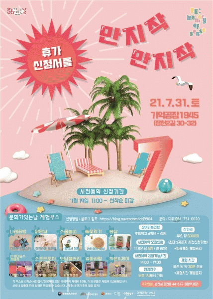 [¹Ìµð¾îÀü³² ÀÓ¼º¿Ï ±âÀÚ] ¼øÃµ½Ã´Â 2021³â ¹®È°¡ ÀÖ´Â ³¯ 7¿ù Çà»ç¸¦ ¿À´Â 7¿ù 31ÀÏ ¿ÀÈÄ 1½ÃºÎÅÍ ¿ÀÈÄ 5½Ã±îÁö ±â¾ï°øÀå 1945 ÀÏ¿ø¿¡¼ °³ÃÖÇÑ´Ù. µðÅõ¹®È°øµ¿Ã¼°¡ ÁÖ°üÇÏ´Â À̹ø ¡®ÈÞ°¡½Åû¼¸¦ ¸¸ÁöÀÛ¸¸ÁöÀÛ¡¯Çà»ç´Â ±â¾ïÀ» ¶°¿Ã¸®¡¦