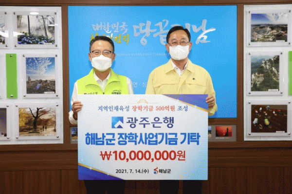 [¹Ìµð¾îÀü³² À±º¸Çö ±âÀÚ] ÇØ³²±º ÀåÇлç¾÷±â±Ý Á¶¼º¿¡ Áö¿ª ±ÝÀ¶±â°üµéµµ ÈûÀ» º¸ÅÂ°í ³ª¼¹´Ù. NH³óÇùÀºÇà ÇØ³²±ºÁöºÎ¿Í ±¤ÁÖÀºÇàÀº Áö¿ªÀÇ ÀÎÀç¾ç¼º°ú ±³À°¹ßÀüÀ» À§ÇØ ÇØ³²±º ÀåÇлç¾÷±â±ÝÀ¸·Î °¢ 1,000¸¸¿øÀ» ±âŹÇß´Ù. Áö³ÇØ¿¡¡¦