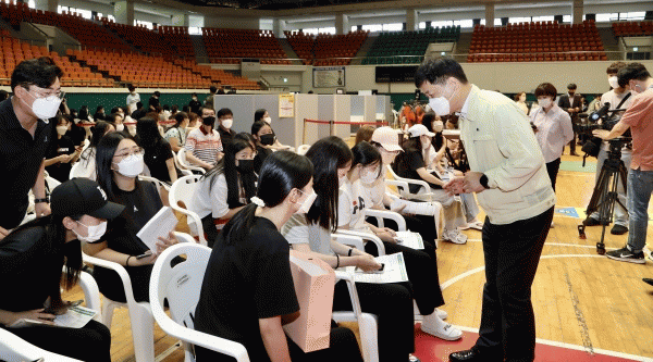 [¹Ìµð¾îÀü³² Á¦°¥´ëÁ¾ ±âÀÚ] Àü³² µµ³» °í3 Çлý ¹× °í±³ ±³Á÷¿øµéÀÌ 19ÀÏ Äڷγª19 ¿¹¹æ ¹é½ÅÁ¢Á¾À» ½ÃÀÛÇÑ °¡¿îµ¥ Àå¼®¿õ Àü¶ó³²µµ±³À°°¨ÀÌ Á¢Á¾ ÇöÀåÀ» ¹æ¹®, Á¢Á¾¿¡ Âü¿©ÇÑ Çлý¡¤±³Á÷¿øµéÀ» °Ý·ÁÇß´Ù. 19ÀÏ Àü¶ó³²µµ±³À°Ã»¿¡ µû¸£¡¦