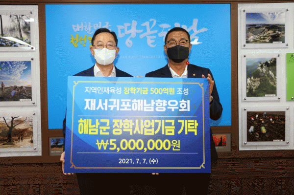 [¹Ìµð¾îÀü³² À±º¸Çö ±âÀÚ] Àç¼±ÍÆ÷½ÃÇØ³²Çâ¿ìȸ°¡ °íÇâ û¼Ò³âµéÀÇ ±³À°À» À§ÇØ ÇØ³²±º ÀåÇлç¾÷±â±ÝÀ¸·Î 500¸¸¿øÀ» ±âŹÇß´Ù. ȸ¿ø¼ö 140¿©¸íÀÇ Àç¼±ÍÆ÷½ÃÇØ³²Çâ¿ìȸ´Â Àü±¹ÀÇ ÇØ³² Çâ¿ìȸ Áß¿¡¼µµ °íÇâ¿¡ ´ëÇÑ °¢º°ÇÑ »ç¶ûÀ¸·Î ³ó¡¦