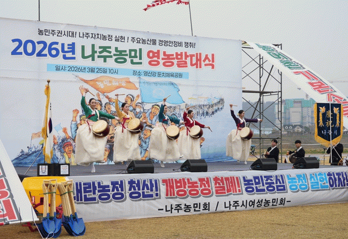 [¹Ìµð¾îÀü³² Á¦°¥´ëÁ¾ ±âÀÚ]Àü³² ³ªÁֽð¡ º»°ÝÀûÀÎ ¿µ³óöÀ» ¾ÕµÎ°í ³ó¾÷ÀÎÀÇ ÈÇÕ°ú °á¼ÓÀ» ´ÙÁö¸ç dz³â ³ó»ç¸¦ ±â¿øÇÏ´Â ¿µ³ó¹ß´ë½ÄÀ» °³ÃÖÇß´Ù. ³ªÁֽô Áö³ 25ÀÏ ¿µ»ê°µÐġüÀ°°ø¿ø¿¡¼ ¡®2026³â ³ó¾÷ÀÎ ¿µ³ó¹ß´ë½Ä¡¯À» ¿°í ÇÑ¡¦