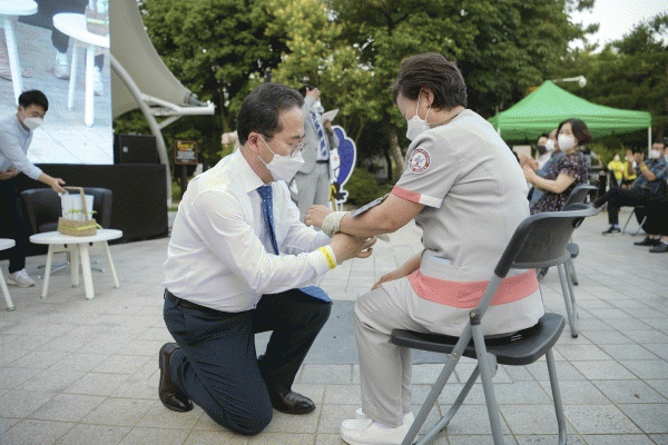 [¹Ìµð¾îÀü³² ÀÓ¼º¿Ï ±âÀÚ] Çã¼® ¼øÃµ½ÃÀåÀº Áö³ 1ÀÏ ¼øÃµÀÇ·á¿ø ±¤Àå¿¡¼ ÃëÀÓ 4³â Â÷¸¦ ¸Â¾Æ ù ¹øÂ° ÇöÀå ´ëÈ·Î ¡®Äڷγª19 ½Ã¹Î ¿µ¿õµé°ú Á¤°Ü¿î ´ã¼Ò¡¯¸¦ °¡Á³´Ù. À̳¯ ´ã¼Ò´Â Äڷγª19 ¹æ¿ª ÇöÀå ÃÖÀϼ±¿¡¼ ¹ã³·¾øÀÌ °í±ººÐÅõÇÏ¡¦
