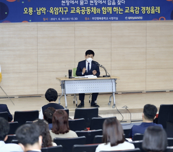 [¹Ìµð¾îÀü³² Á¦°¥´ëÁ¾ ±âÀÚ] Àå¼®¿õ Àü¶ó³²µµ±³À°°¨ÀÌ Áö³ 6¿ù 30ÀÏ ¹«¾ÈÇູÁßÇб³ ½Ãû°¢½Ç¿¡¼ ¹«¾ÈÁö¿ª ¿À·æ ¹× ³²¾ÇÁö±¸¿Í ¸ñÆ÷Áö¿ª ¿Á¾ÏÁö±¸ 12°³ Çб³ Çб³¿î¿µÀ§¿øÈ¸¿Í Çкθðȸ ´ëÇ¥ 30¸íÀ» ´ë»óÀ¸·Î °æÃ»¿Ã·¹¸¦ ½Ç½ÃÇß´Ù. À塦