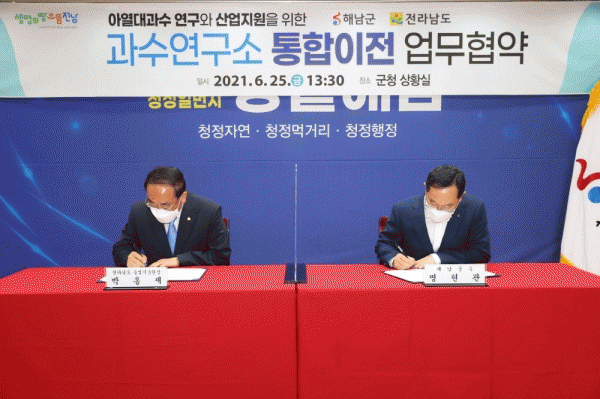 [¹Ìµð¾îÀü³² À±º¸Çö ±âÀÚ] ÇØ³²±ºÀº Àü¶ó³²µµ ³ó¾÷±â¼ú¿ø°ú 25ÀÏ ÇØ³²±ºÃ» »óȲ½Ç¿¡¼ ¿øÈ°ÇÑ µµ °ú¼ö¿¬±¸¼ÒÀÇ ÅëÇÕÀÌÀü ¹× ±âÈĺ¯È ´ëÀÀ Áö¿ª³ó¾÷ ¹ßÀüÀ» À§ÇÑ ¾÷¹«Çù¾àÀ» ü°áÇß´Ù. ¸íÇö°ü ÇØ³²±º¼ö¿Í ¹ÚÈ«Àç Àü¶ó³²µµ ³ó¾÷±â¼ú¿øÀ塦