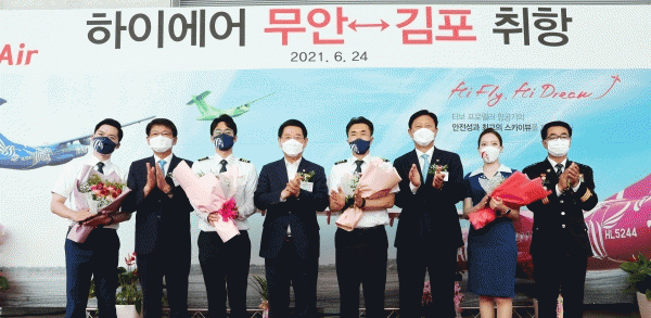 [¹Ìµð¾îÀü³² Á¦°¥´ëÁ¾ ±âÀÚ] ¹«¾È~±èÆ÷ °£ ÇϴñæÀ» ¿¬°áÇÏ´Â ¡®ÇÏÀÌ¿¡¾î¡¯ÀÇ ½Å±Ô ³ë¼± ÃëÇ×½ÄÀÌ 24ÀÏ ¹«¾È±¹Á¦°øÇ׿¡¼ ¿·È´Ù. ÃëÇ׽Ŀ¡´Â ±è¿µ·Ï Àü³²µµÁö»ç, ¼»ï¼® ±¹È¸ÀÇ¿ø, ±èÇÑÁ¾ µµÀÇȸ ÀÇÀå, ±è»ê ¹«¾È±º¼ö, À±Çü°ü ÇÏÀÌ¿¡¾î¡¦