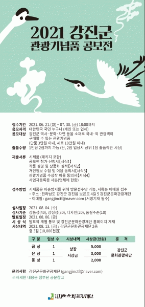 [¹Ìµð¾îÀü³² Á¦°¥´ëÁ¾ ±âÀÚ] °Áø±º¹®È°ü±¤Àç´ÜÀº °Áø±ºÀÇ Æ¯»öÀ» ´ãÀº °ü±¤±â³äǰÀ» ¹ß±¼¡¤À°¼ºÇϱâ À§ÇØ ¡®2021 °Áø±º °ü±¤±â³äǰ °ø¸ðÀü¡¯À» °³ÃÖÇÑ´Ù. ´ëÇѹα¹ ±¹¹Î ´©±¸³ª Âü¿©ÇÒ ¼ö ÀÖ´Â À̹ø °ø¸ðÀüÀº °Áø±º ¿ª»ç¡¤¹®È¡¤ÀÚ¡¦
