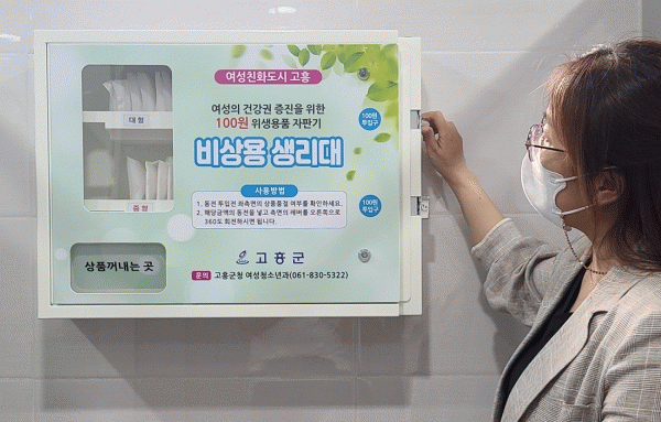[¹Ìµð¾îÀü³² Á¦°¥´ëÁ¾ ±âÀÚ] °íÈﱺÀº ¿©¼º °Ç°±Ç ÁõÁø°ú ÀÏ»ó»ýȰ¿¡¼ºÎÅÍ ¿©¼ºÀ» ¹è·ÁÇÏ´Â ¼º ÆòµîÇÑ ¿©¼ºÄ£Èµµ½Ã ±â¹Ý ¸¶·ÃÀ» À§ÇØ °ø°ø½Ã¼³ ÈÀå½Ç 8°³¼Ò¿¡ ºñ»ó¿ë¡®100¿ø À§»ý¿ëǰ ÀÚÆÇ±â¡¯18´ë¸¦ ¼³Ä¡, ½Ã¹ü ¿î¿µÇÑ´Ù°í ¹àÇû´Ù. ¡¦