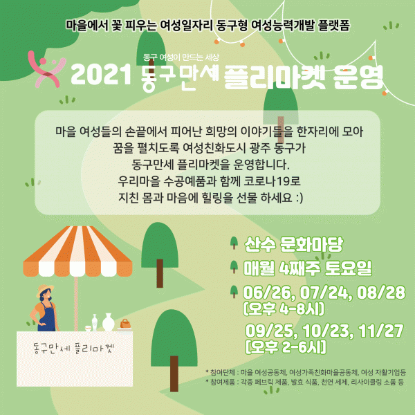 [¹Ìµð¾îÀü³² ±èÁ¤¿ì ±âÀÚ] ±¤ÁÖ µ¿±¸´Â µ¿±¸Çü ¿©¼º´É·Â°³¹ß Ç÷§ÆûÀÎ ¡®µ¿±¸¸¸¼¼¡¯ ¿©¼º °ÅÁ¡ °ø°£À» ¸¶·ÃÇÏ°í ¿©¼ºÀÇ °æÁ¦Àû ÀÚ¸³±â¹Ý ¸¶·ÃÀ» À§ÇÑ Çø®¸¶ÄÏÀ» »ó¼³ ¿î¿µÇÑ´Ù°í ¹àÇû´Ù. Çø®¸¶ÄÏÀº ¸Å¿ù ³Ý° ÁÖ Åä¿äÀÏ ÁֹεéÀÇ Á¢±Ù¡¦