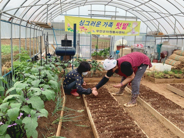 [¹Ìµð¾îÀü³² Á¦°¥´ëÁ¾ ±âÀÚ] ¹«¾È±º ÀÚ¿øºÀ»ç¼¾ÅÍ´Â Áö³ 18ÀÏ ½Ì±×·¯¿î °¡Á·ÅÔ¹çÀ» ¿î¿µÇØ ¼öÈ®ÇÑ Ã¤¼Ò 20kgÀ» °ü³» »çȸº¹Áö½Ã¼³°ú ÅëÇÕ»ç·Ê°ü¸®°¡Á¤ 20°÷¿¡ Àü´ÞÇß´Ù°í ¹àÇû´Ù. ½Ì±×·¯¿î °¡Á·ÅÔ¹ç »ç¾÷Àº ¹«¾È±ºÀÚ¿øºÀ»ç¼¾ÅÍ Æ¯È»ç¾÷¡¦