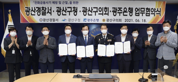 [¹Ìµð¾îÀü³² ±èÁ¤¿ì ±âÀÚ] ±¤ÁÖ ±¤»ê±¸°¡ 18ÀÏ ¿ÀÀü ±¤»ê°æÂû¼ ¾îµîȦ¿¡¼ ±¤»ê°æÂû¼¡¤±¤»ê±¸ÀÇȸ¡¤±¤ÁÖÀºÇà°ú º¸À̽ºÇÇ½Ì µî ±ÝÀ¶»ç±â ÇÇÇØ ¿¹¹æÀ» À§ÇÑ ¾÷¹«Çù¾àÀ» ü°áÇß´Ù. À̳¯ 4°³ ±â°üÀº ±ÝÀ¶»ç±â·Î ÀÎÇÑ °æÁ¦Àû ÇÇÇØ¸¦ ¹æÁöÇÏ¡¦