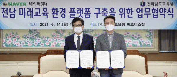 [¹Ìµð¾îÀü³² Á¦°¥´ëÁ¾ ±âÀÚ] Àü¶ó³²µµ±³À°Ã»°ú ³×À̹ö°¡ 6¿ù 14ÀÏ Àü¶ó³²µµ±³À°Ã» ºñÁî´Ï½º½Ç¿¡¼ Àü³² ±³À°ÇöÀåÀÇ ¿©°Ç °³¼±À» À§ÇÑ ¾÷¹«Çù¾àÀ» ü°áÇß´Ù. µÎ ±â°üÀº ÀÌ Çù¾àÀ» ÅëÇØ ¹Ì·¡Çü ÇнÀ½Ã½ºÅÛ µµÀÔ ¹× °³¼±À» À§ÇØ ³×À̹ö ¿þ¡¦