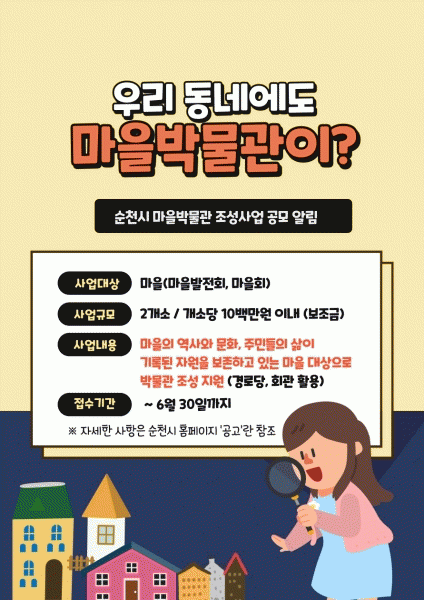 [¹Ìµð¾îÀü³² ÀÓ¼º¿Ï ±âÀÚ] ¼øÃµ½Ã´Â ÁֹεéÀÌ ÁÖü°¡ µÇ¾î ¸¶À»°ú °ü·ÃµÈ ÀÚ¿øÀ» ¸ð¾Æ Àü½Ã¡¤º¸Á¸ÇÏ´Â ¡®¸¶À»¹Ú¹°°ü¡¯À» Á¶¼ºÇÒ ¸¶À» 2°÷À» 6¿ù 30ÀϱîÁö °ø¸ðÇÑ´Ù. ¡®¸¶À»¹Ú¹°°ü Á¶¼º»ç¾÷¡¯Àº ÁֹεéÀÌ »ç¿ëÇÏ´ø »ýȰ¿ëǰÀ̳ª ¸¶À»°ú °ü¡¦