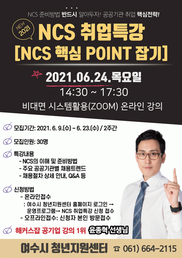[¹Ìµð¾îÀü³² ÀüÇü¼º ±âÀÚ] ¿©¼ö½Ã´Â °ø°ø±â°ü Ãë¾÷À» ÁغñÇϴ û³âµéÀ» ´ë»óÀ¸·Î ÀÌ´Þ 24ÀÏ 2021³â »ó¹Ý±â NCS Ãë¾÷Ư°À» ¿î¿µÇÑ´Ù°í ¹àÇû´Ù. À̹ø Ãë¾÷ Ư°Àº ¡®NCS ÇÙ½É POINT Àâ±â¡¯¶ó´Â ÁÖÁ¦·Î ÇØÄ¿½º °ø±â¾÷ Ãë¾÷ Àü¹® ´ëÇ¥ ÄÁ¡¦