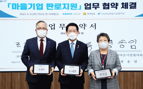 [¹Ìµð¾îÀü³² Á¦°¥´ëÁ¾ ±âÀÚ] Àü¶ó³²µµ¿Í ÄÚ·¹ÀÏÀ¯Åë, Àü³²¸¶À»±â¾÷ÇùÀÇȸ´Â 8ÀÏ Àü³²Áö¿ª ¸¶À»±â¾÷ ÆÇ·Î È®´ë ¾÷¹«Çù¾àÀ» Çß´Ù. Àü³²µµÃ»¿¡¼ ¿¸° Çù¾à½Ä¿¡´Â ±è¿µ·Ï Àü³²µµÁö»ç¿Í Á¶ÇüÀÍ ÄÚ·¹ÀÏÀ¯Åë ´ëÇ¥ÀÌ»ç, Á¤¼ÛÀÓ Àü³²¸¶À»±â¾÷Çù¡¦