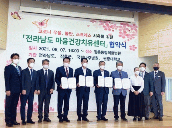 [¹Ìµð¾îÀü³² Á¦°¥´ëÁ¾ ±âÀÚ] Àü³² ÀåÈï¿¡¼ Áö³ 7ÀÏ ¡®Àü¶ó³²µµ ¸¶À½°Ç°Ä¡À¯¼¾ÅÍ¡¯ ¼³¸³À» À§ÇÏ ¾÷¹«Çù¾à½ÄÀÌ ¿·È´Ù. Ä¡À¯¼¾ÅÍ´Â Äڷγª19·Î ÀÎÇÑ ¿ì¿ï¡¤ºÒ¾È¡¤½ºÆ®·¹½º·Î Á¤½ÅÀû °íÅëÀ» È£¼ÒÇÏ´Â Àü³²µµ³» °øÁ÷ÀÚ¿Í ÀåÈﱺ¹ÎµéÀÇ ¡¦