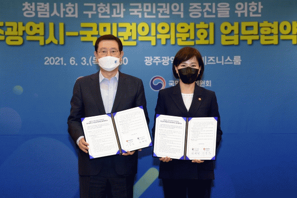 [¹Ìµð¾îÀü³² Á¦°¥´ëÁ¾ ±âÀÚ] ±¤ÁÖ±¤¿ª½Ã¿Í ±¹¹Î±ÇÀÍÀ§¿øÈ¸´Â 3ÀÏ ±¤ÁÖ½Ãû ºñÁî´Ï½º·ë¿¡¼ û·Å»çȸ ±¸Çö°ú ½Ã¹Î±ÇÀÍ ÁõÁøÀ» À§ÇÑ ¾÷¹«Çù¾àÀ» ü°áÇß´Ù. Çù¾àÀº ±¹¹Î±ÇÀÍÀ§¿øÈ¸°¡ Àü±¹ ½Ã¡¤µµ¸¦ ¼øÈ¸Çϸç ü°áÇϰí ÀÖ´Â °ÍÀ¸·Î À̹ø ±¤ÁÖ¡¦